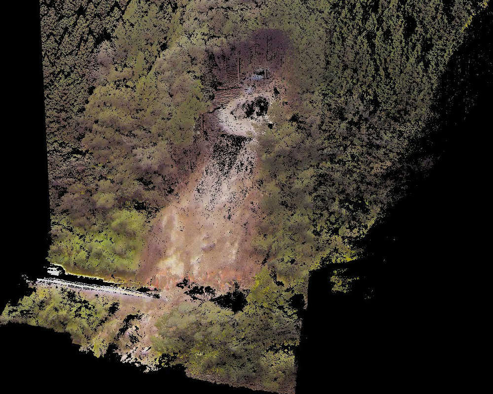 土木工事における運土量、鉱山や採石場における採掘量、処分場の埋め立て量、砂防ダムの堆積量等の計測にも有効です。非接触で計測が可能となるため、危険箇所でも安全にデータを取得する事が可能です。3 次元点群データを活用すれば、任意の位置やピッチで断面計測を行う事ができるほか、高い点密度での計測データにより、求積精度の向上が図れます。