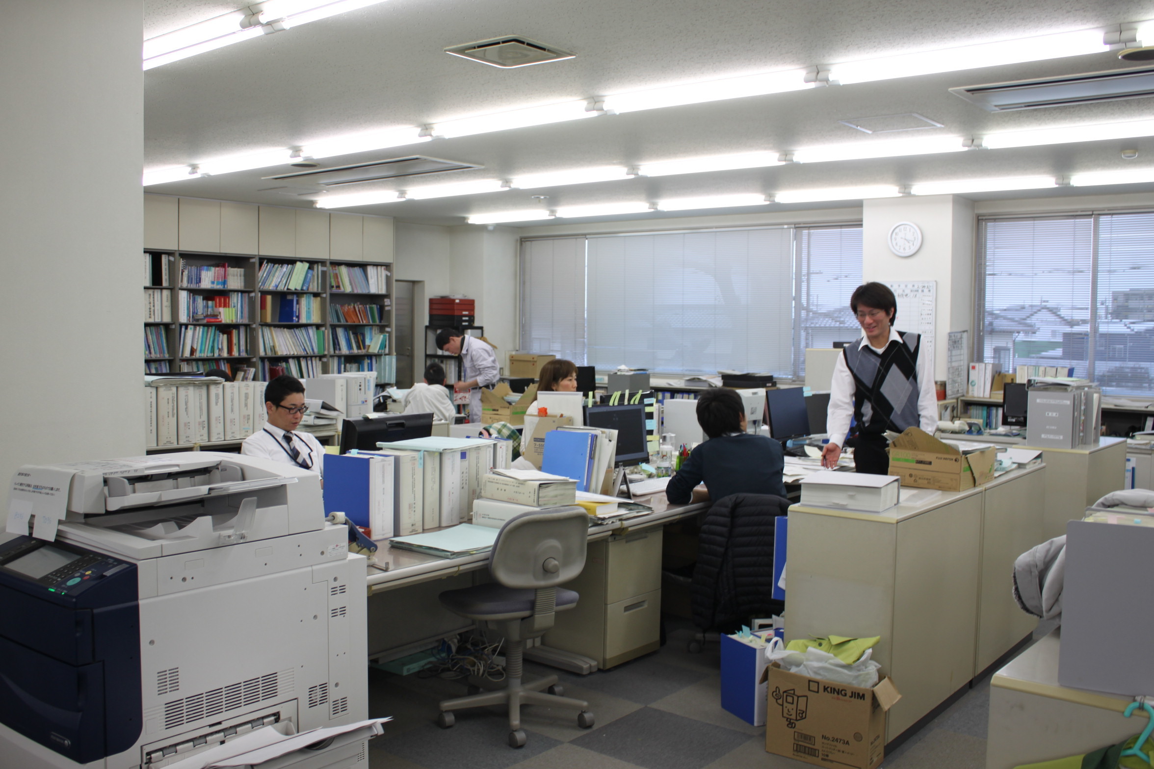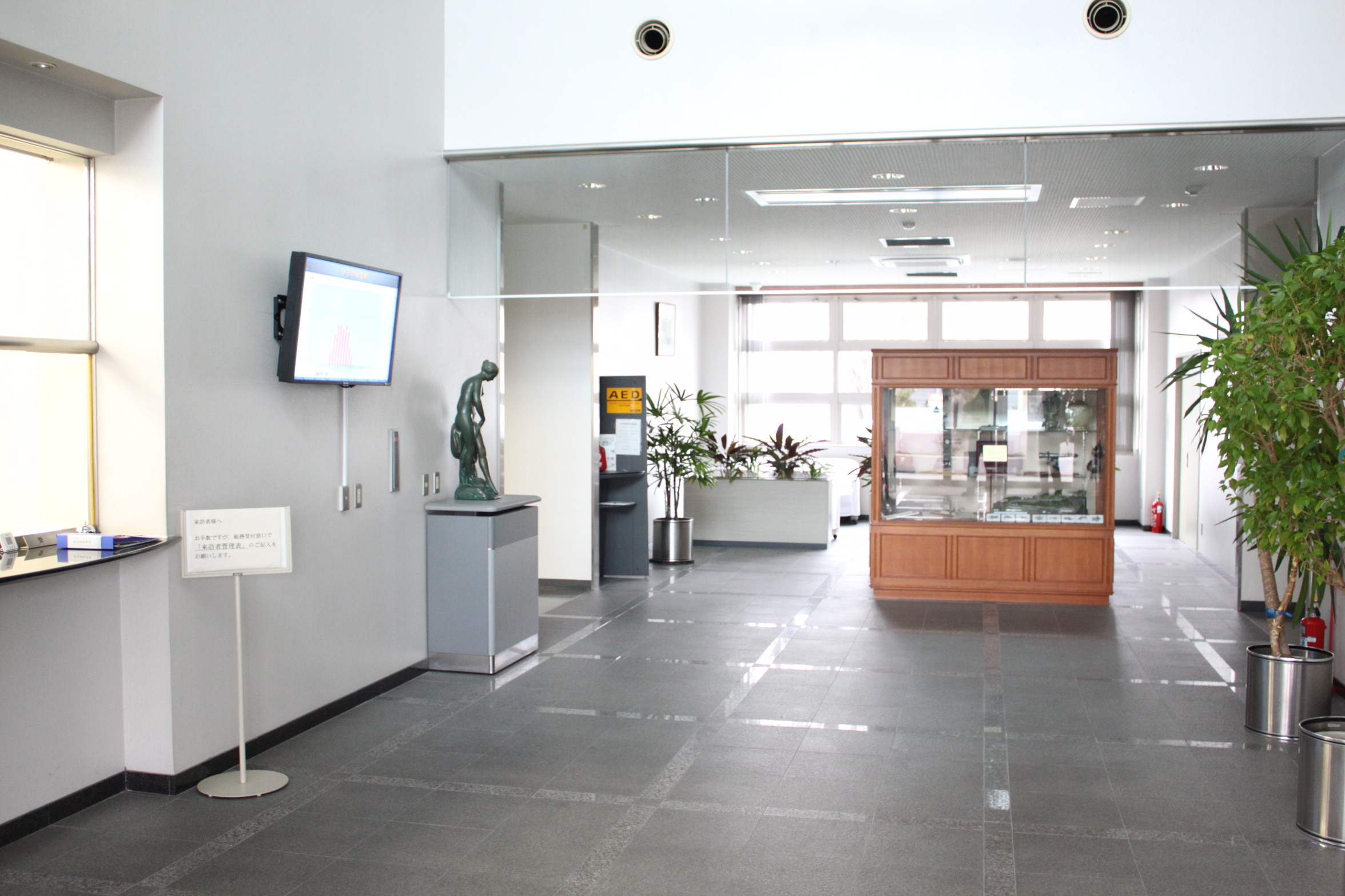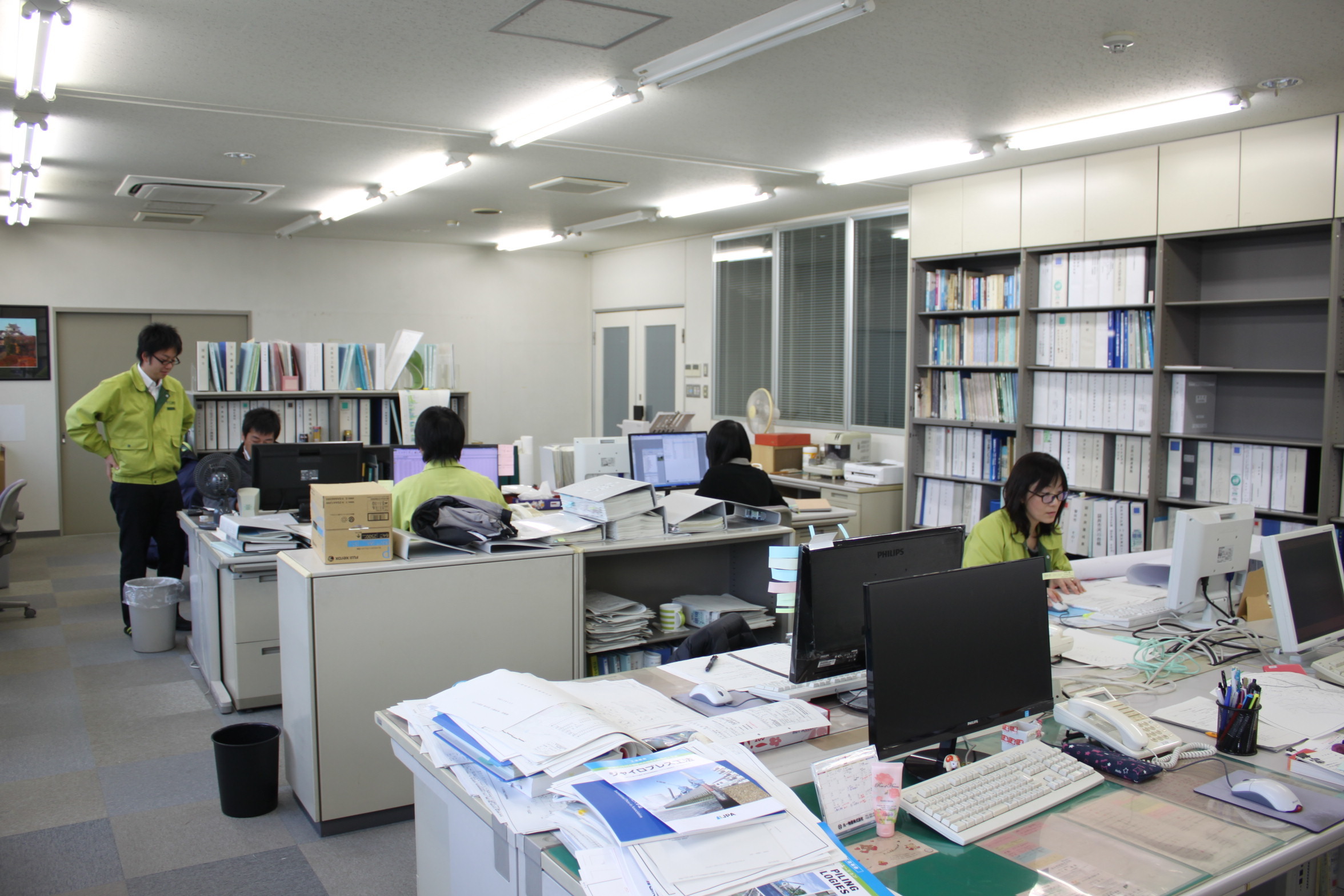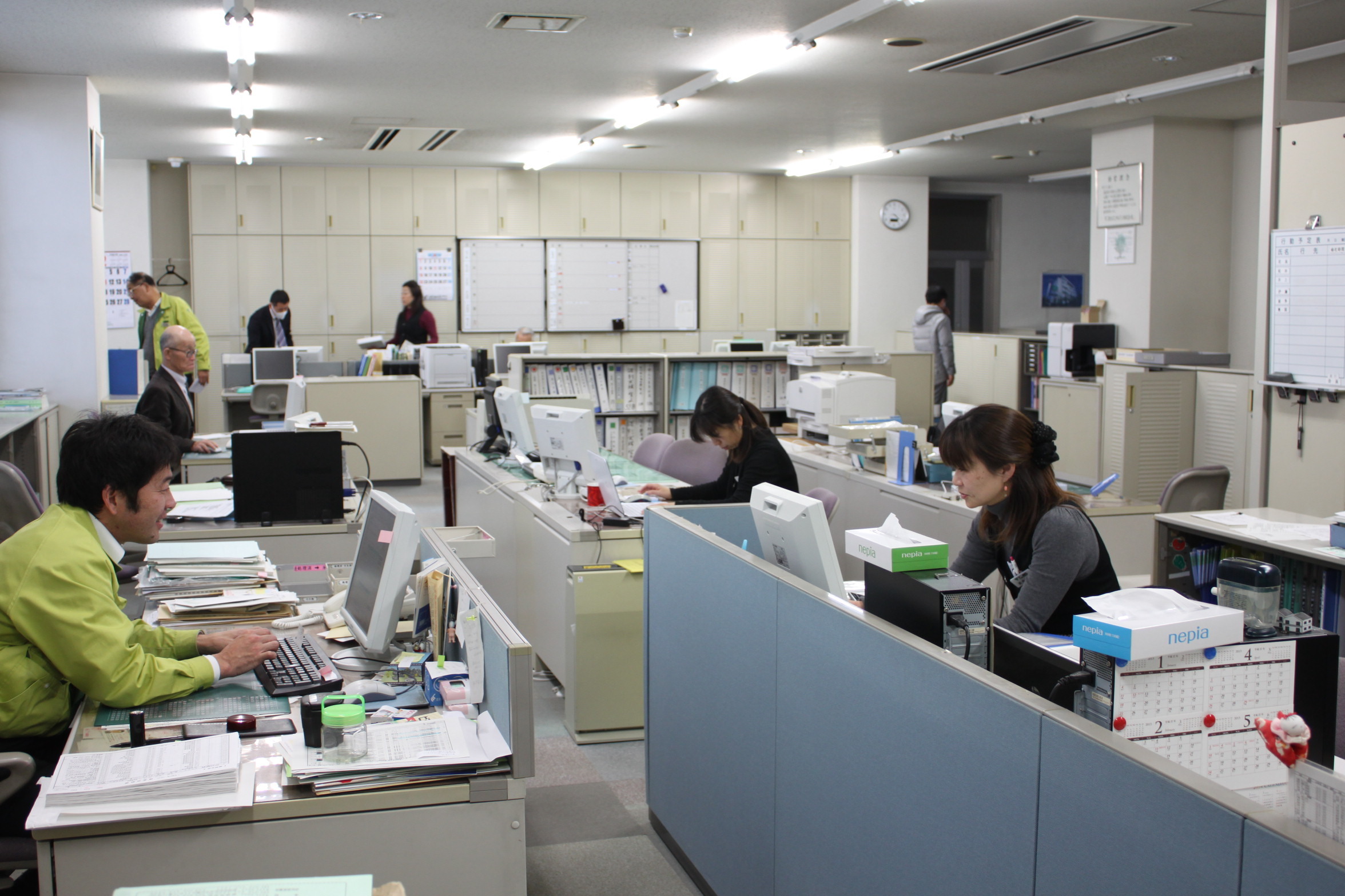 本社の社屋内は、用務員の手によって丁寧な清掃が施され、とても清潔に保たれています。応接室や各フロアの待機スペースは、観葉植物・絵画・写真にて彩られ、心に安らぎが感じられる空間の確保に努めています。最上階の5階フロアは「食堂」として開放され、社員達は眺めのよい景色を見ながら、会話を弾ませています。ジュース自販機がありますので、休憩時間に利用できます。